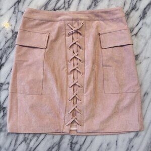 NEW with tags: 'WANT' Pink Suedette Lace Up Mini Skirt.