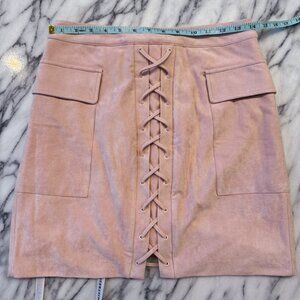 NEW with tags WANT Pink Suedette Lace Up Mini Skirt
