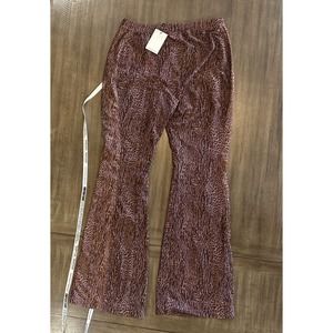 Elevate your wardrobe with these NWT Mistress Rocks Los Angeles Size Large pants. The animal print flare mesh pants are perfect for any occasion, whether it's a party, festival, or casual outing. The pull-on style and flat front make them easy to wear, while the high-rise and flared leg give a flattering silhouette.