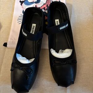 NWT Miu Miu Leather Logo Band Bow-Detailed Ballerinas
