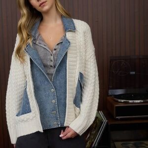 Brand new with tags! Mixed Media Cable Knit Denim Trim Jacket