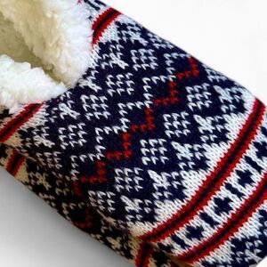 NWT Mixit Women’s 1-Pair Washable Slipper Socks, Blue Fair Isle Sweater, L/XL