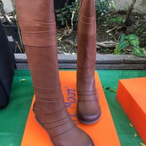 BNWT in box, Miz Mooz brand leather boots, style "Porter". Women's size 6 in Whiskey color (a rich warm brown). Soft supple leather w leather fold detailing wrapping entire boot. Rounded toe, full length internal side zipper closure w elastic gusset for calf. Stacked dark wood heel, 1.5", shaft height measures 15" from arch and 16" from sole. ~15" circumference for calf. No scuff hard rubber soles. Smoke & pet free household. 🚫Trades 🚫Lowball 🚫PayPal 🚫Drama