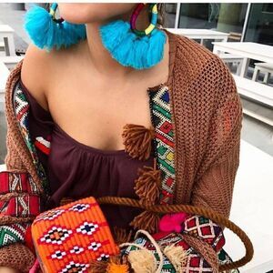 NWT Mochi Hallu Statement Tassel Woven Black Boho Fringe Crochet Big Earrings
