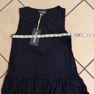 New with tag ModCloth Dark Navy Blue Sleeveless peplum tank crochet neck.