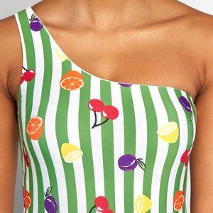 NWT ModCloth Fruit Striped One-Shoulder Swimsuit Retro/Vintage