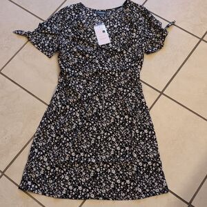 NWT ModCloth Just Gotta Have It Floral Black and White Mini Dress This elegant black and white dress features a charming floral pattern, perfect for any occasion. The short sleeves with ties and flattering fit make it a versatile addition to your wardrobe. Size 2 please see measurements pictures to be sure of fit