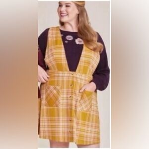 NWT ModCloth Making the Grade Gold Plaid Overall Jumper Dress Size XL