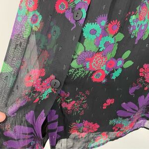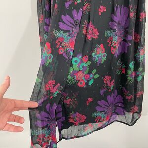 Look closely! Frolicking amidst a lush garden of pink, purple, and blue blooms, clever kitties duck and dash throughout this adorable pleated swing skirt! Featuring a vintage-inspired high waistline, side pockets, button-up detailing down the front, and a pattern that was hand drawn in-house by our design team exclusively for the ModCloth namesake label, this knee-length, fully-lined skirt is truly one-of-a-kind! Made from a black flowy, crinkle chiffon with subtle metallic detailing, you cannot go wrong with wearing this quirky separate during and way after the holidays.