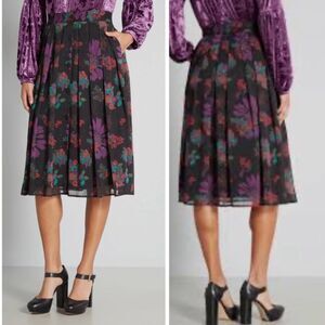 NWT ModCloth Meow Bouquet Pleated Swing Skirt Size 6