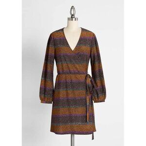 Brand new with tags Modcloth Primetime Shine striped shimmer glitter Wrap Dress