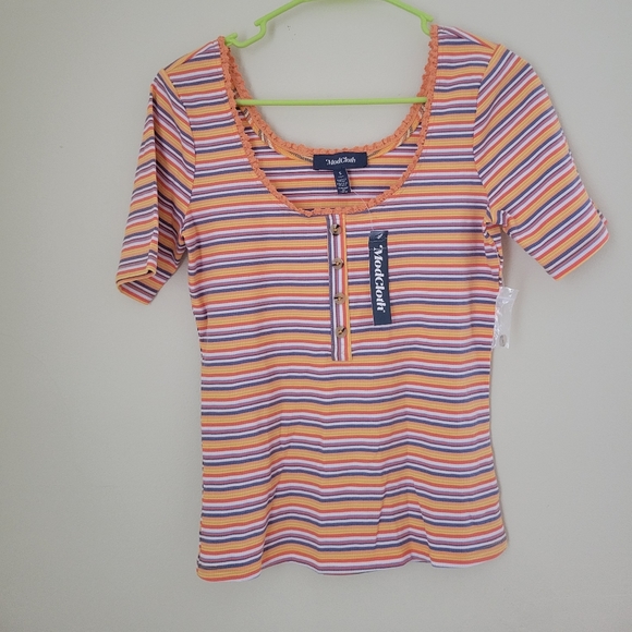 NWT ModCloth top. Orange, purple, yellow, & white striped. Size small.