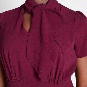 A ModCloth exclusive designed in collaboration with Collectif, this burgundy dress reveals an A-line silhouette, adjustable neck tie closure, and a semi-sheer construction. Wear this short sleeve number with 1940s-inspired accessories for an outfit that will make you want to dance any time of day!