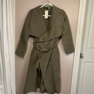 NWT Moda Italy Belted Camel Wrap Jacket Trench Waterfall Style Duster Coat M/L