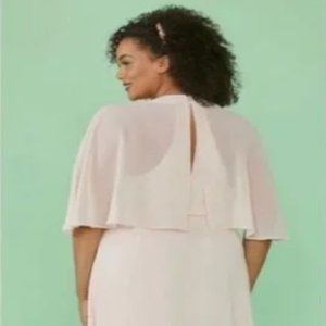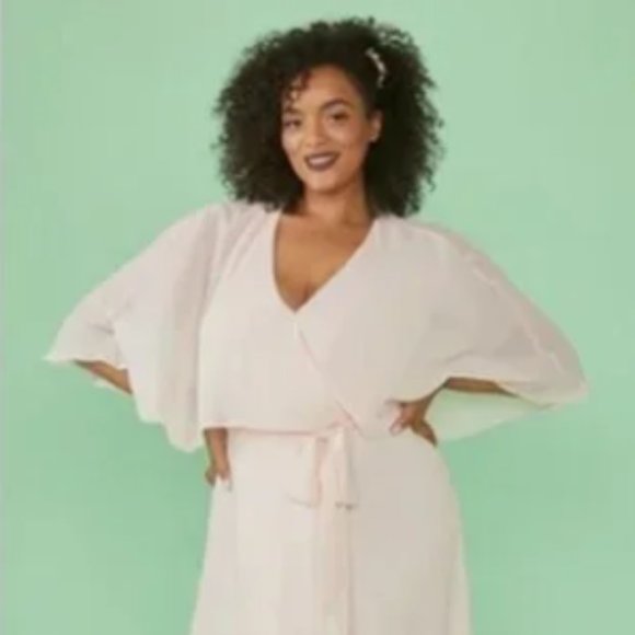 From Modcloth website: "Enfold yourself in effortless 1970s vintage-inspired glamour in this eden green halter-top wrap dress. Created in-house by one of our talented designers, this ModCloth namesake label dress features an elegant sheer cape that delicately frames your shoulders and buttons in the back. The true wrap-tie feature makes this stunning maxi dress easily adjustable, so you’ll feel as beautiful as you look. So beautiful.