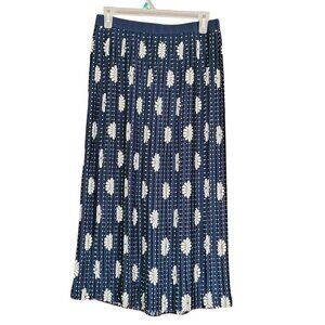 NMT Modcloth White Daisy Floral Polka Dot Blue Pleated Pull On Midi Skirt Sz. M