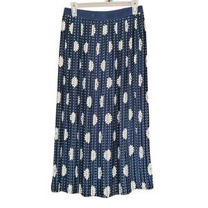 NWT Modcloth White Daisy Floral Polka Dot Blue Pleated Pull On Midi Skirt Sz. M