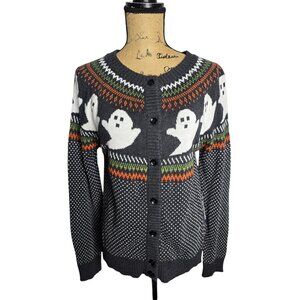 NWT Modcloth You've Been Ghosted Fair Isle Cardigan Sweater Halloween