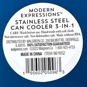 NWT Modern Expressions Stainless Steel 3 In 1 Can Or Bottle Cooler Blue or Gray