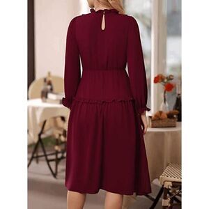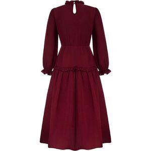 NWT Modest Elegant Long Sleeve Retro Vintage Victorian Ruffle Red Midi Dress XXL