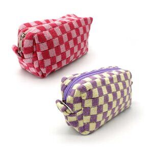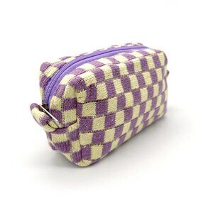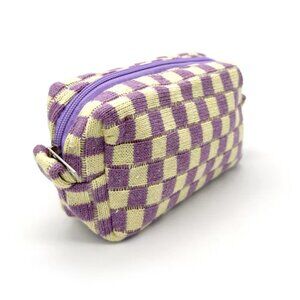 NWT Mollie Zippered Purple Checkerboard Makeup Clutch