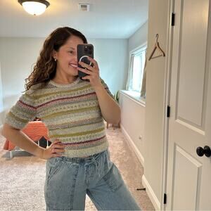 NWT Molly Goddard Silver Gold Metallic Knit Short Sleeve Sweater Top Medium