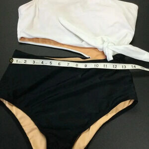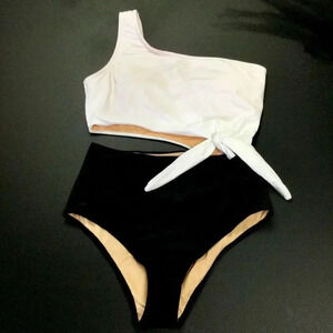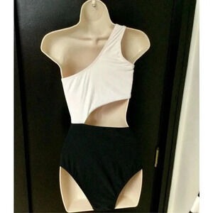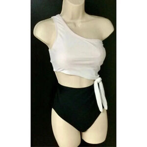 NWT Molybell Womens Black White One Shoulder Cut Out Tie Side Swimsuit Medium