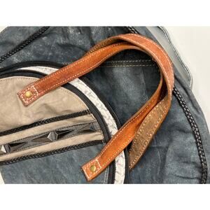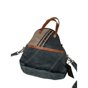 NEW WITH TAGS! Mona B. Fold-Over Up-cycled and Re-cycled Canvas GIA Tote Bag with Vegan Leather Trim and studded accents