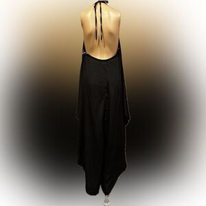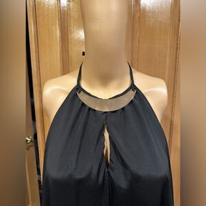 NWT Monaco Blk Maxi Chiffon Halter high low Dress Gold Metal Necklace SZ L