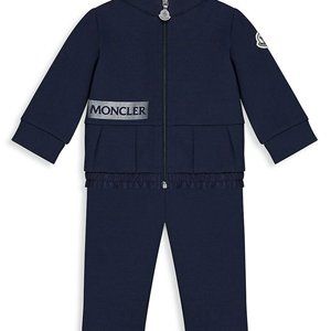 Zip front cardigan with pleated hem and matching pants. Cotton/elastane/polyester. Machine wash. Imported.