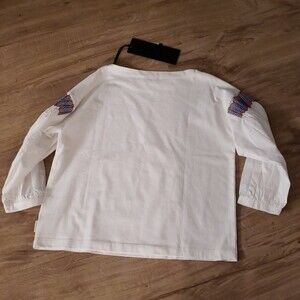 NWT Moncler White Feminine Luxury Basic 3/4 Sleeve Cotton Blouse Size Medium