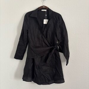 NWT Monday Beachwear x Revolve Size P Black Kythira Wrap Linen Dress