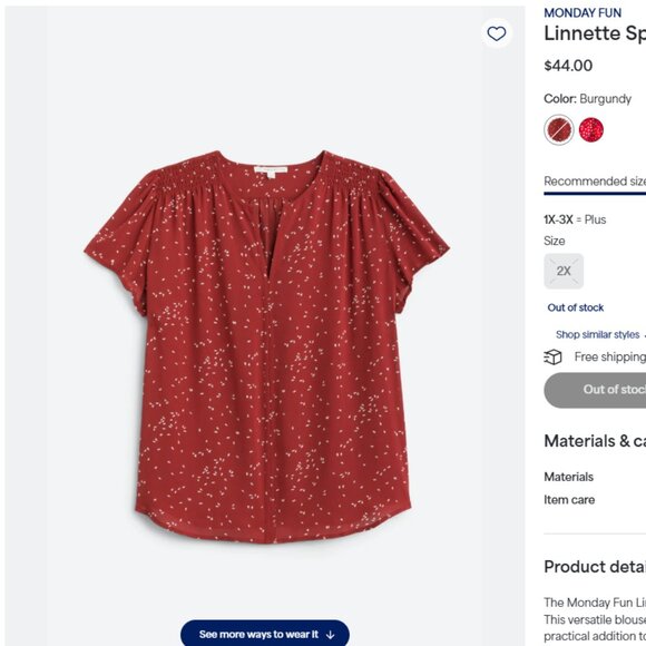 Monday Fun Linnette Split Neck Smocked Blouse (StitchFix)