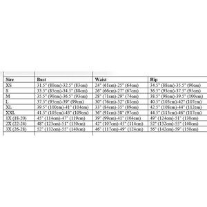 * Size Conversion: XS = 0-2 | S = 4-6 | M = 8-10 | L = 12-14 | XL = 16 | XXL = 18 | 2X = 20W-22W | 3X = 24W-26W