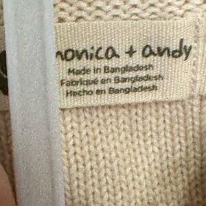 NWT Monica + Andy 100% Organic Cotton Beige Baby Knit Set w/ Pink K Initial 3-6m
