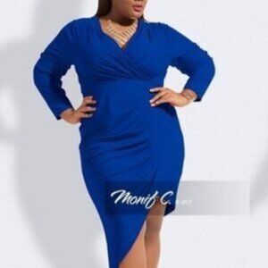 NWT Monif C Jenna Asymmetrical Dress Blue Long Sleeve Size 2X