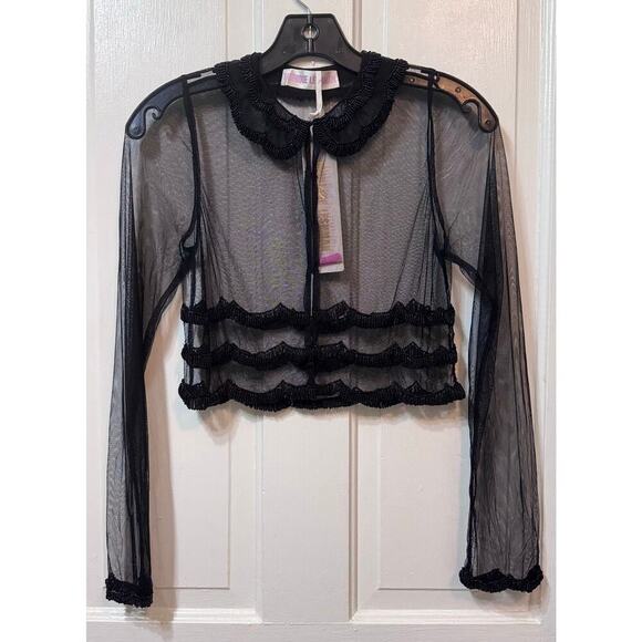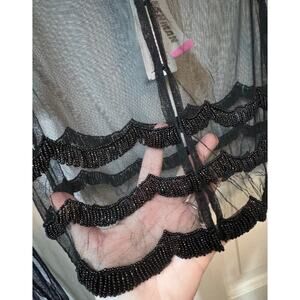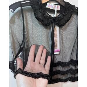 NWT Monique Leshman Black Sheer Scallop Beaded Crop Blouse Top Size S