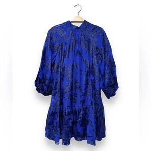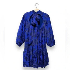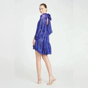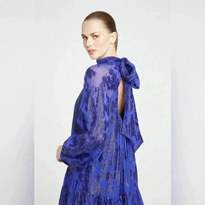 NWT Monique Lhuillier Back Tie Trapeze Dress IN Azurite Metallic Purple Blue 2