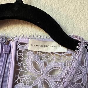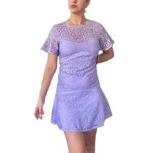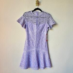 NWT Monique Lhuillier Lavender Purple Lace Floral Mini Dress Size Small