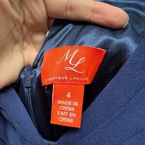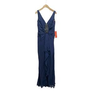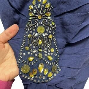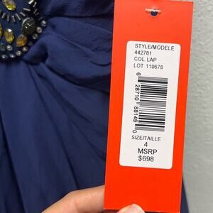NWT Monique Lhuillier Navy Silk Gown Jeweled Beaded Size 4 MSRP $698