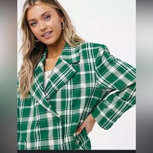 ⚡️NWT Monki green and white checkered blazer- fully lined, soft comfortable and light.