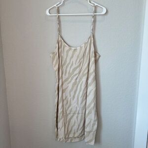 NWT Monrow Cream Tan Zebra Print Spaghetti Strap Cami Slip Mini Dress - Size L