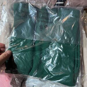 NWT Monrow Gal Green Brushed V Neck Tank Top Medium ribbed