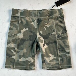 NWT Monrow Olive Camouflage Biker Shorts with Pockets
