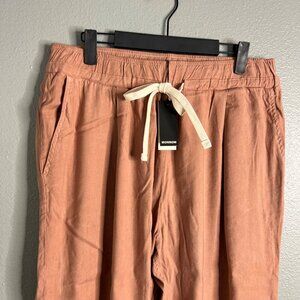 NWT Monrow Viscose Linen Pull On Ankle Crop Pants Relaxed Pockets Large