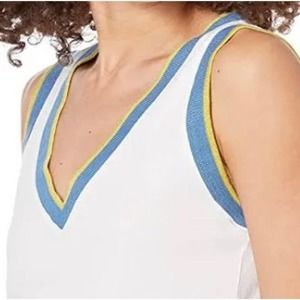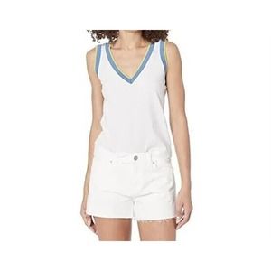 NWT Monrow Womens V Neck Tank Size XS Ribbed Trim White Sleeveless Cotton.
