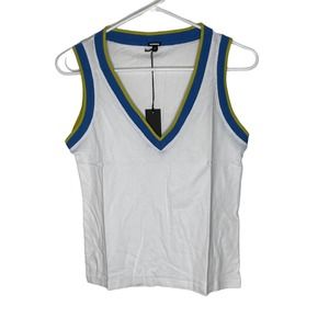 NWT Monrow Womens V Neck Tank Size XS Ribbed Trim White Sleeveless Cotton