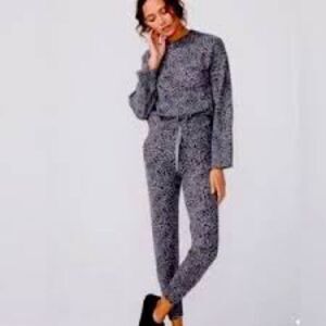 NWT Monrow grey leopard cashmere blend bell sleeve sweater size large
