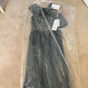 NWT Montage by Mon Cheri M515 Lace Mother of the Bride Dress Slate Blue size 4