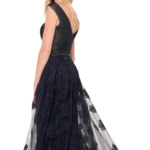 NWT Montage by Mon Cheri M909 Crepe Prom Dress Black/Navy Blue Size 6